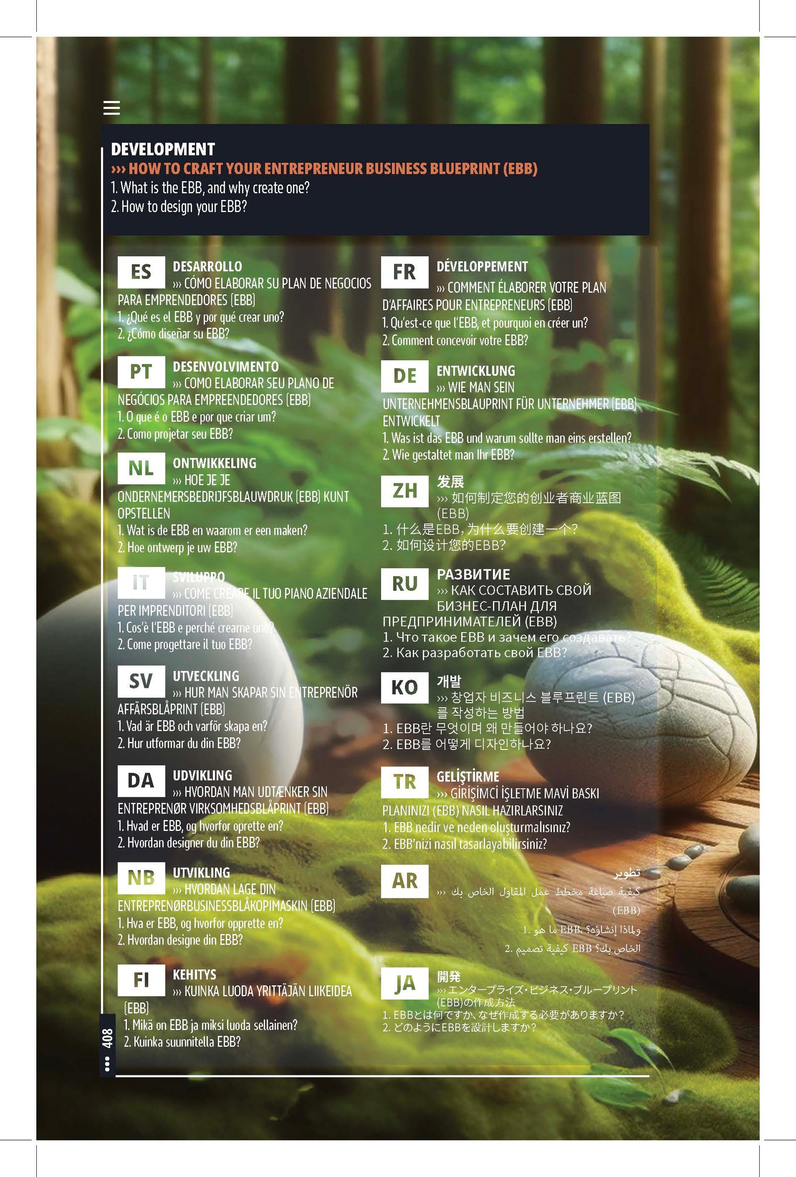 • The one-page Entrepreneurs Business Blueprint (EBB) to keep you focused and on track.